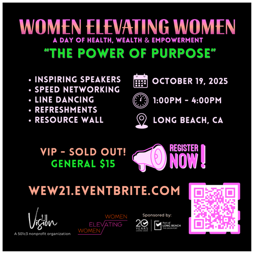 Join us for Women Elevating Women: A Day of Health, Wealth, and Empowerment – The Power of Purpose, hosted by 2.18 Vision and sponsored by the Port of Long Beach. This intimate afternoon gathering brings together fifty dynamic women for an experience focused on connection, growth, and purpose-driven impact.
